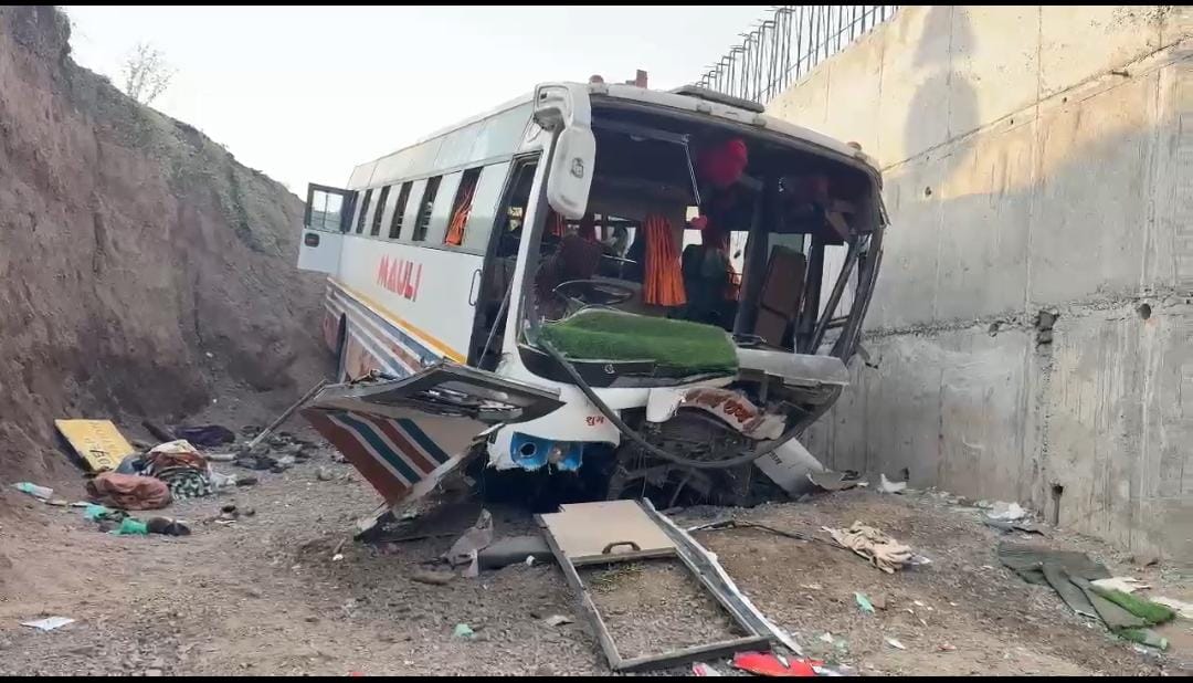 कराडजवळ पर्यटक बसचा भीषण अपघात; 40-45 विद्यार्थी-शिक्षक जखमी