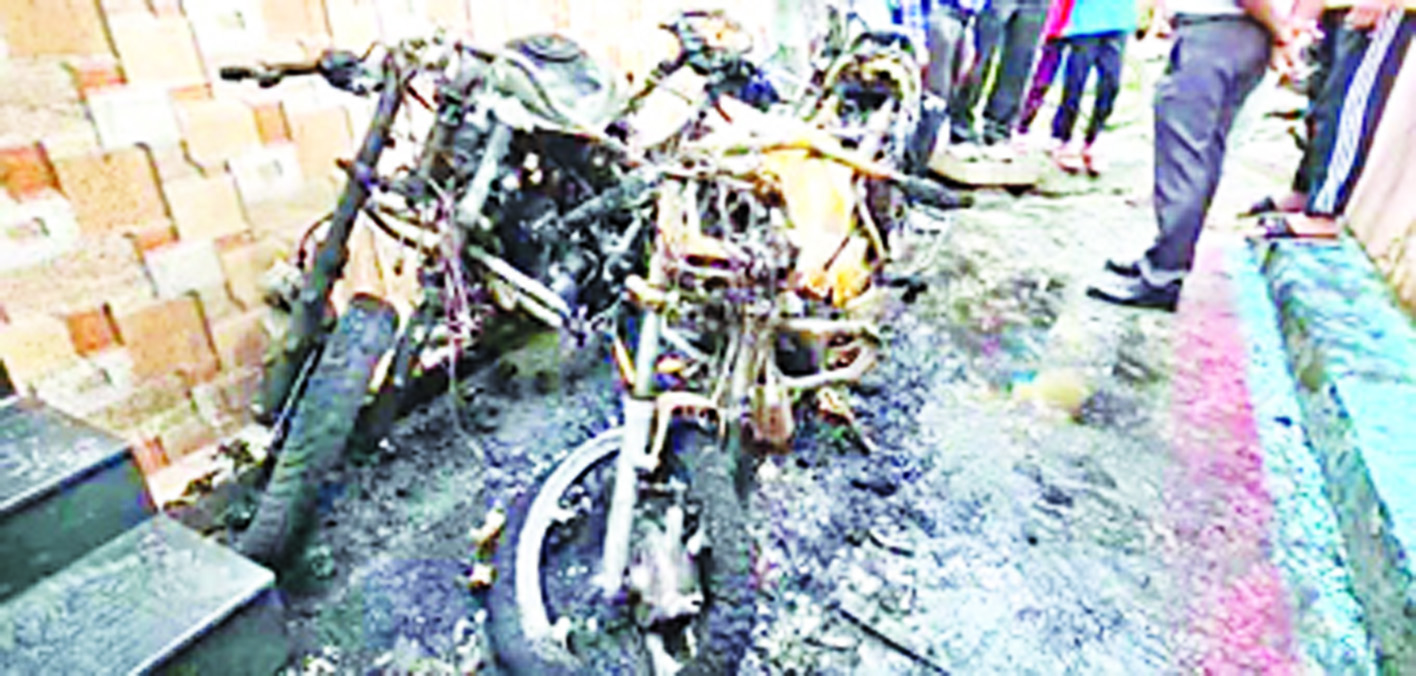 याबाबत सविस्तर वृत्त असे की, मनमाड शहरातील रेल्वे स्टेशन बाजूला असलेल्या सर्व्हे नंबर 52 इंडियन हायस्कूलजवळील परिसरातील एका घरासमोर असलेल्या दोन मोटारसायकली अज्ञात व्यक्तींनी जाळून टाकल्या असून, या आगीत दोन्ही मोटारसायकली भस्मसात झाल्या आहेत.