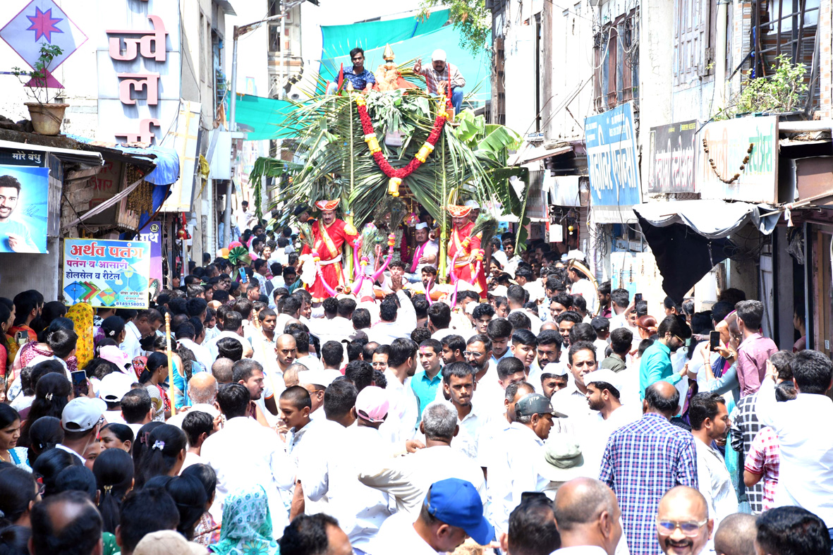 बुधवारी सकाळी 6 वाजता मंदिर परिसरात रथ पूजन करून मिरवणुकीला सुरुवात झाली. ढोल-ताशा, टाळ-मृदुंगाच्या गजरात रथ व कावडी शहरातील प्रमुख मार्गांवरून फिरविण्यात आले. रथाला श्रीफळ वाढवून दर्शन घेण्यासाठी भाविकांची मोठी गर्दी झाली होती. वारकरी भजनी मंडळांच्या दिंड्यांनी मिरवणुकीत भक्तिरंग भरला.