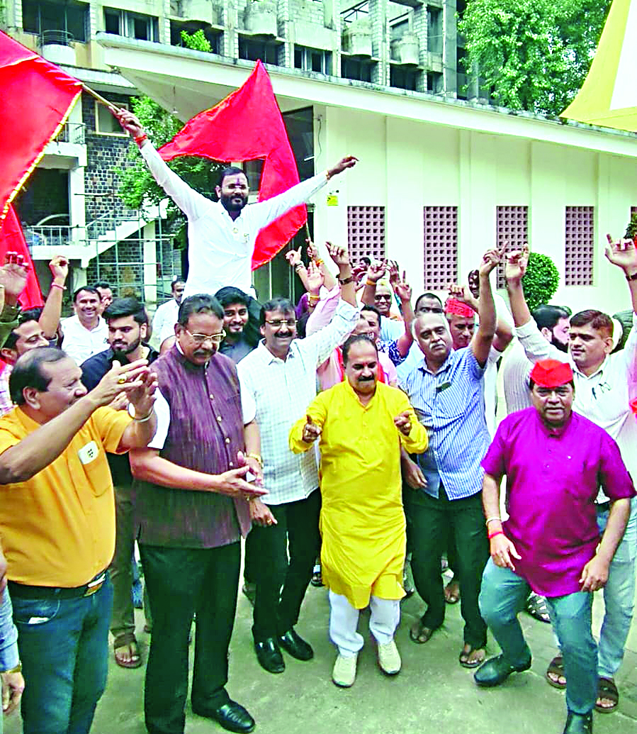 नाशिक : मराठा समाज आरक्षणासंदर्भात राज्य सरकारने घेतलेल्या ऐतिहासिक निर्णयाचे स्वागत करत नाशिक जिल्ह्यात सकल मराठा समाजाने जल्लोषात आनंदोत्सव साजरा केला. जिल्ह्यातील विविध भागांत या विजयाचा गुलाल उधळत मराठा समाज बांधवांनी आनंदोत्सव वेगवेगळ्या पद्धतीने साजरा केला. नाशिकमधील समाजबांधवांनी ग्रामदैवत कालिकामातेची आरती करून पेढे वाटले. फटाक्यांच्या रोषणाईत सरकारचे मनःपूर्वक अभिनंदन करण्यात आले. सरकारने घेतलेल्या निर्णयामुळे आता शैक्षणिक व नोकरीमध्ये मोठ्या प्रमाणात फायदा होणार असल्याकारणाने राज्य सरकारचे कौतुक केले. मराठा समाजाने अभिनंदनाचा ठराव यावेळी ठेवत तो सर्वांच्या उपस्थितीत मंजूर करण्यात आला.