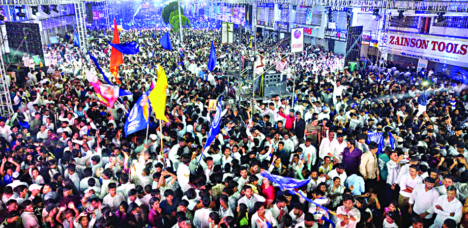 नाशिक : येथील शिवाजी रोडवरील भारतरत्न डॉ. बाबासाहेब आंबेडकरांच्या पुतळ्यासमोर डॉ. बाबासाहेब आंबेडकर यांना अभिवादन करण्यासाठी मंगळवारी उसळलेला भीमसागर.