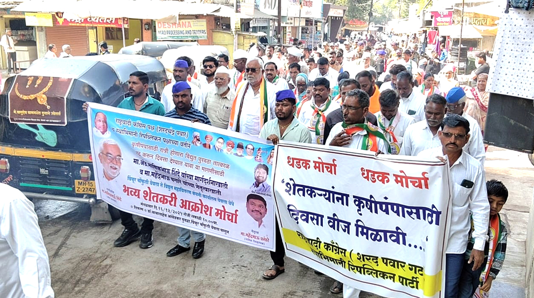 कृषिपंपांसाठी रात्रीचा विद्युत पुरवठा तत्काळ रद्द करून तो दिवसा करावा, या मागणीसाठी राष्ट्रवादी काँग्रेस पक्ष शरदचंद्र पवार गट आणि स्वाभिमानी रिपब्लिकन पक्ष यांच्या संयुक्त विद्यमाने येवल्यात वीज वितरण कंपनी कार्यालयावर भव्य मोर्चा काढण्यात आला.