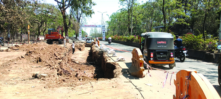 ♦ रस्त्यांवरील सुरू असलेली खोदकामे व अपूर्ण कामे.
