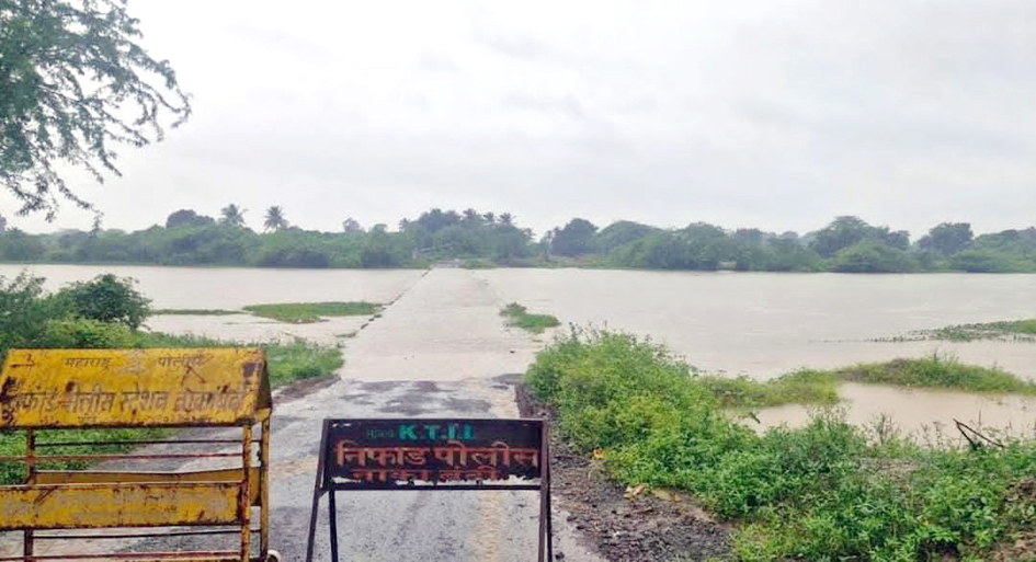 परतीच्या पावसाने सोंगणीला आलेल्या पिकांचे नुकसान; निफाड-सिन्नर वाहतूक बंद
