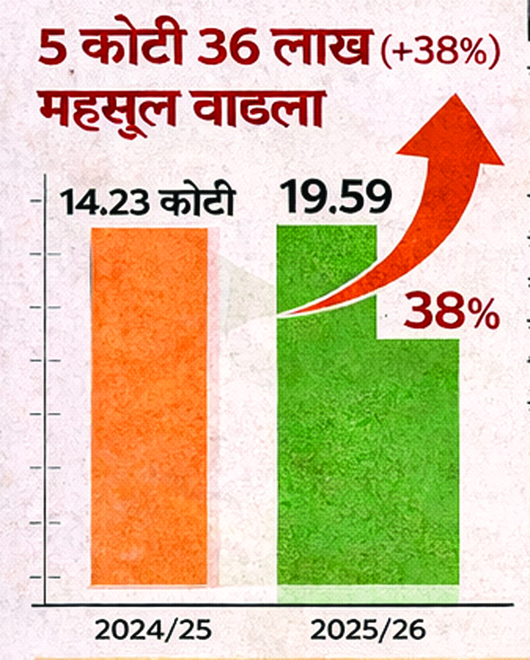 नवीन वाहन घेतल्यानंतर अनेक वाहनमालक आपल्याला आवडतो त्या नंबरला पसंती देतात. चॉइस नंबरसाठी प्रादेशिक परिवहन विभागाकडून शुल्क आकारले जाते. त्यामुळे सन 2025-26 मध्ये सुमारे 14 हजार 638 वाहनमालकांनी चॉइस नंबरच्या माध्यमातून प्रादेशिक परिवहन विभागाला (आरटीओ) सुमारे 19 कोटी 59 लाख 39 हजार महसूल दिला आहे. 2024-25 च्या तुलनेत पाच कोटी 35 लाख 18 हजार 500 रुपयांची वाढ झाली आहे.