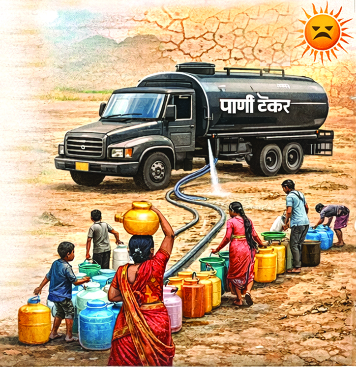 उन्हाचा पारा चाळिशीच्या घरात गेल्याने ग्रामीण भागात विहिरी, कूपनलिका आणि लहान जलस्रोत आटत चालले आहेत. यामुळे नागरिकांना पाण्यासाठी भटकंती करावी लागत आहे. यावर तात्पुरता उपाय म्हणून जिल्हा प्रशासनाने 46 गावांसह 103 वाड्यांवर 52 टँकरद्वारे पाणीपुरवठा सुरू केला आहे.