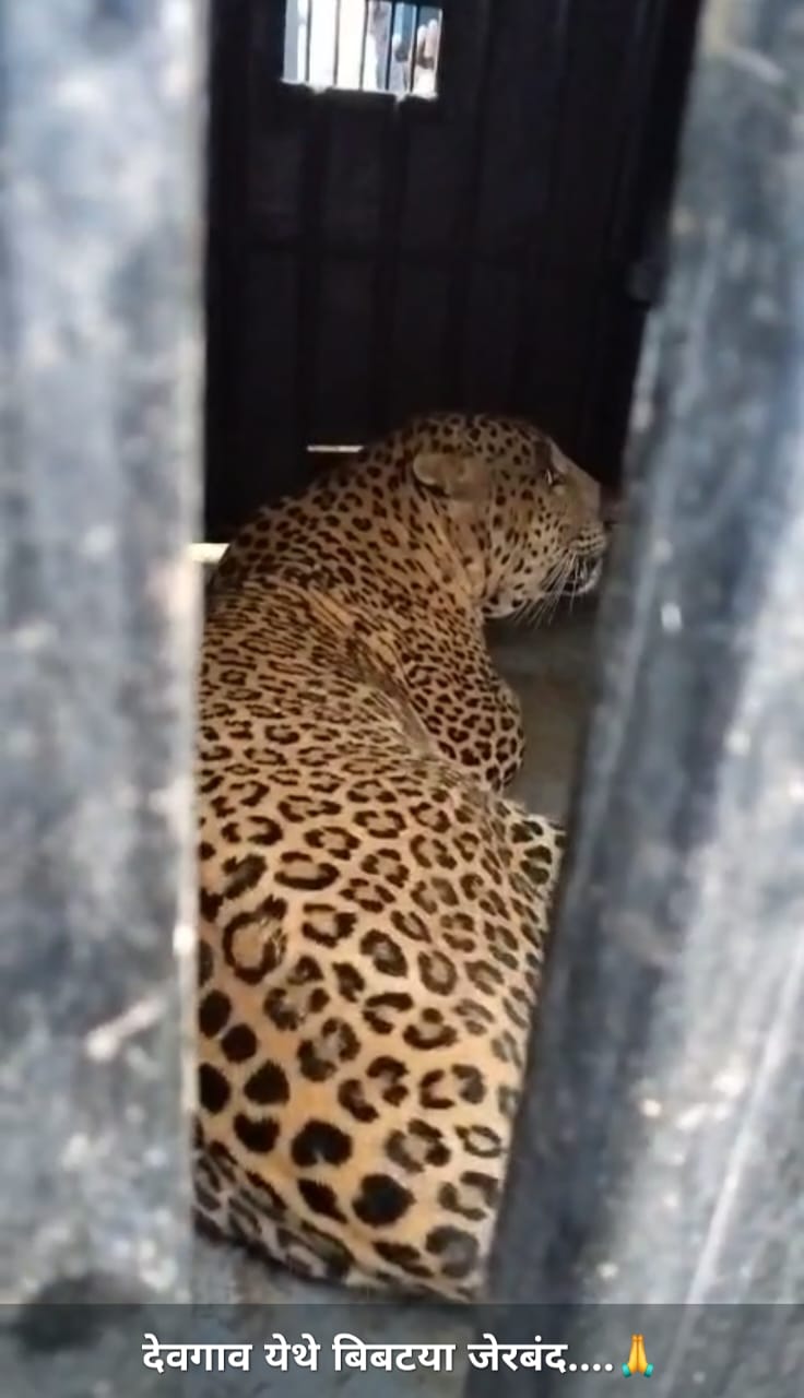 पिंजऱ्यात जेरबंद झालेल्या बिबट्यास घेऊन जाण्यास नागरिक व विद्यार्थ्यांचा विरोध….