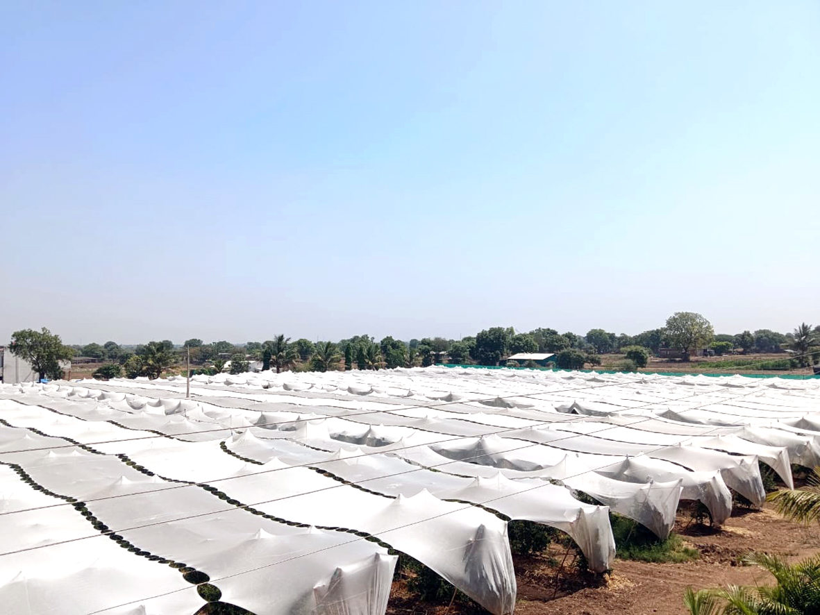 घोटेकर यांनी आपल्या सुमारे सहा एकर क्षेत्रातील डाळिंबबागेवर पांढर्या कापडी आच्छादनाचा वापर केला आहे. या आच्छादनामुळे संपूर्ण बाग जणू पांढर्या शालूने नटल्याचे आकर्षक दृश्य निर्माण झाले आहे. मात्र, या प्रयोगामागे केवळ सौंदर्य नसून, शास्त्रीय दृष्टिकोनातून उष्णतेचा परिणाम कमी करण्याचा हेतू आहे.