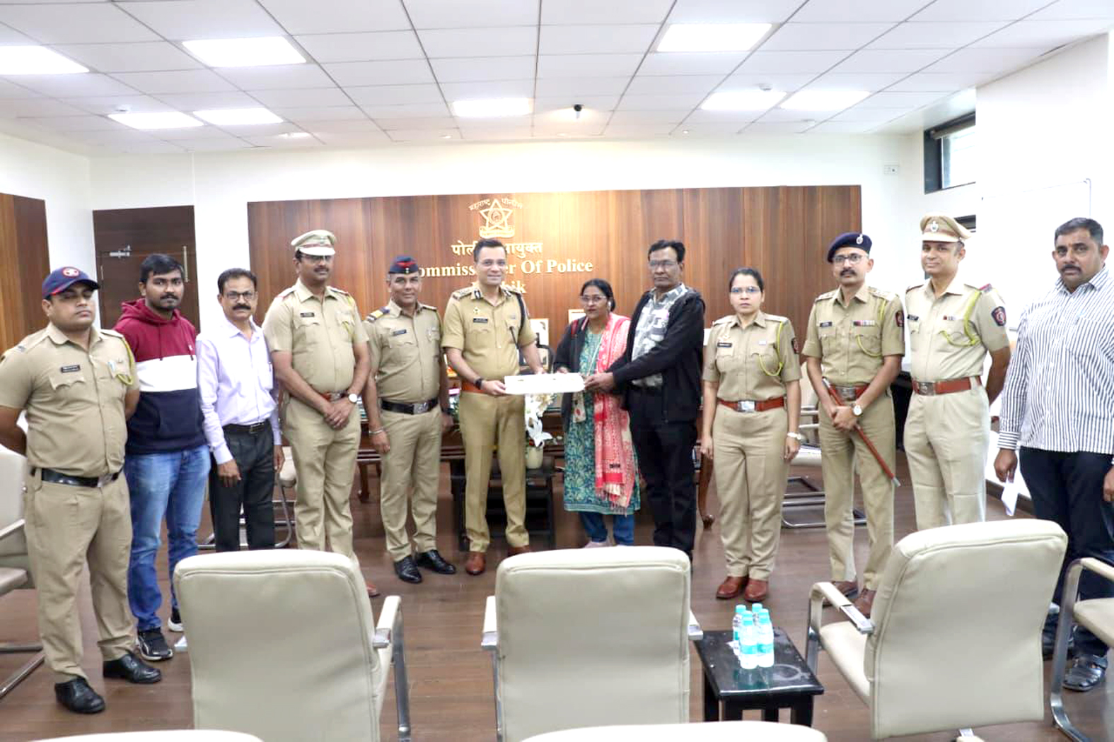 आडगाव पोलिसांनी सोन्या-चांदीच्या चोरीप्रकरणी 12 लाख 50 हजारांचे सोन्याचे दागिने हस्तगत केलेल्या उत्कृष्ट कामगिरीबद्दल पोलीस आयुक्त संदीप कर्णिक यांच्या हस्ते आडगाव पोलीस ठाण्यातील अधिकारी आणि कर्मचार्यांचा प्रशंसापत्र देऊन गौरव केला.