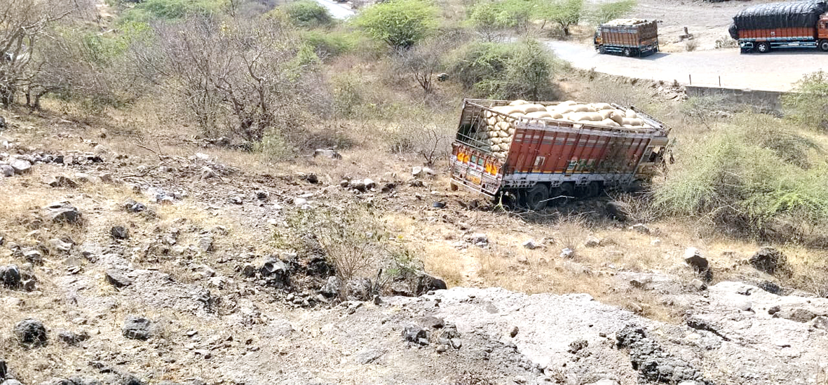 नांदगाव तालुक्यातील कासारीजवळील चांदेश्वरी घाटात सोमवारी (दि.23) मका घेऊन जाणारा ट्रक अवघड उतारावरून चालकाचा ताबा सुटल्याने पुढे कापूसमाल घेऊन जाणार्या ट्रकला व त्यानंतर संरक्षण भिंतीला धडक देत सुमारे 30 फूट खोल दरीत कोसळला. या अपघातात दोन्ही ट्रकचे मोठ्या प्रमाणात नुकसान झाले आहे. सुदैवाने कोणतीही जीवितहानी झाली नाही. मात्र कापूस भरलेला ट्रक रस्त्यावर पडल्याने वाहतूक मार्ग बंद झाला होता. सोमवारी रात्री 12 ला अपघात होऊन दुसर्या दिवशी सकाळी आठपर्यंत वाहतूक मोकळी झाली नव्हती. यामुळे दिवसभर नांदगावकडे जाणारा रस्ता बंद होता.