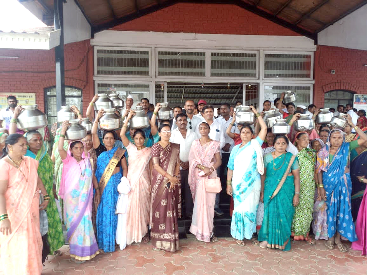 मनेगावचे सामाजिक कार्यकर्ते राजाराम मुरकुटे, सरपंच सुनीता सोनवणे, उपसरपंच भालेराव तसेच पाटोळेचे सरपंच सुनील सांगळे यांच्या नेतृत्वाखाली मंगळवारी (दि.17) तहसील कार्यालय हंडा मोर्चा काढण्यात आला. आंदोलनात मनिषा सोनवणे, माधुरी कांडेकर, निकीता शिंदे, सुरेखा वाघचौरे, गंगूबाई मांडे, जनाबाई सोनवणे, जयश्री आंबेकर, मंदा मडके, शोभा भालेराव, लता गायकवाड, मंगल मुरकुटे, उषा मुरकुूटे, सुशीला भालेराव, सुनिता मांडे, अनिता मुरकुटे, छाया सोनवणे, सविता पुंडे, स्वाती सोनवणे, रंजना सोनवणे, विजया मुरकुटे, सचिन पवार, संजय पवार यांच्यासह मोठ्या संख्येने महिला सहभागी झाल्या होत्या.